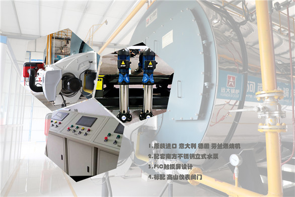 原裝進(jìn)口燃燒器及閥組;高山一次性閥門(mén)儀表;南方立式不銹鋼水泵;PLC觸摸屏控制系統(tǒng);